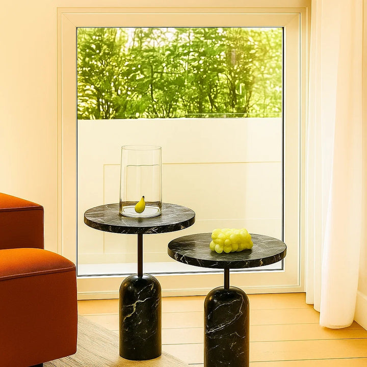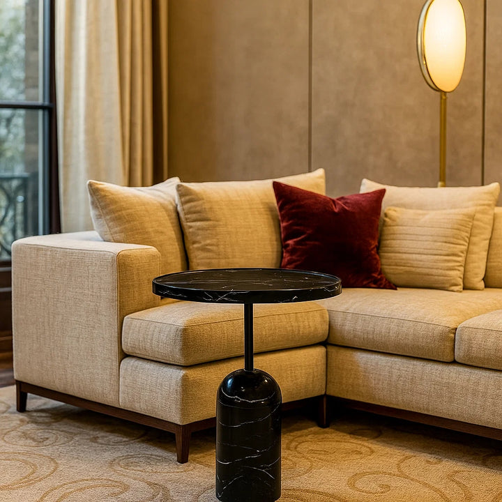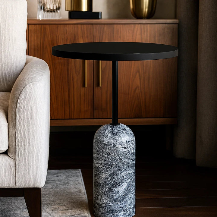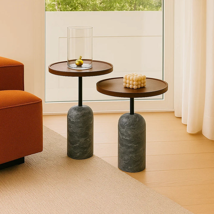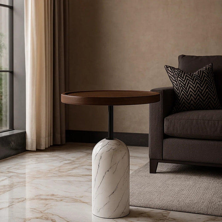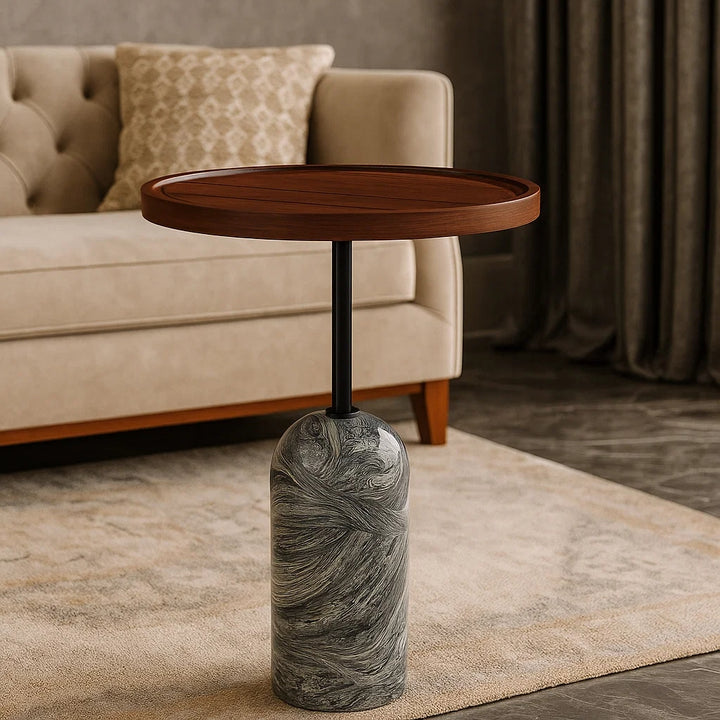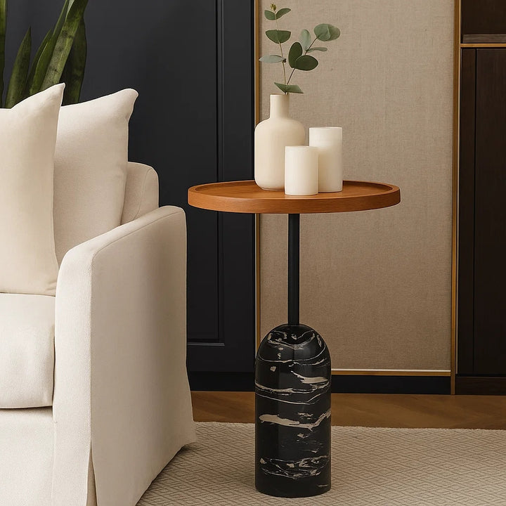 Afro Side Table - Brown Wood / Marquina Black Furniture