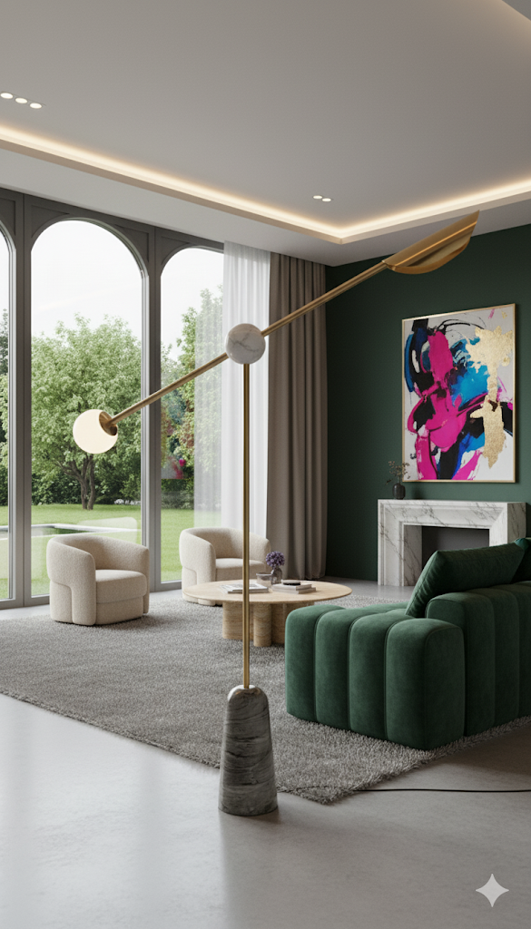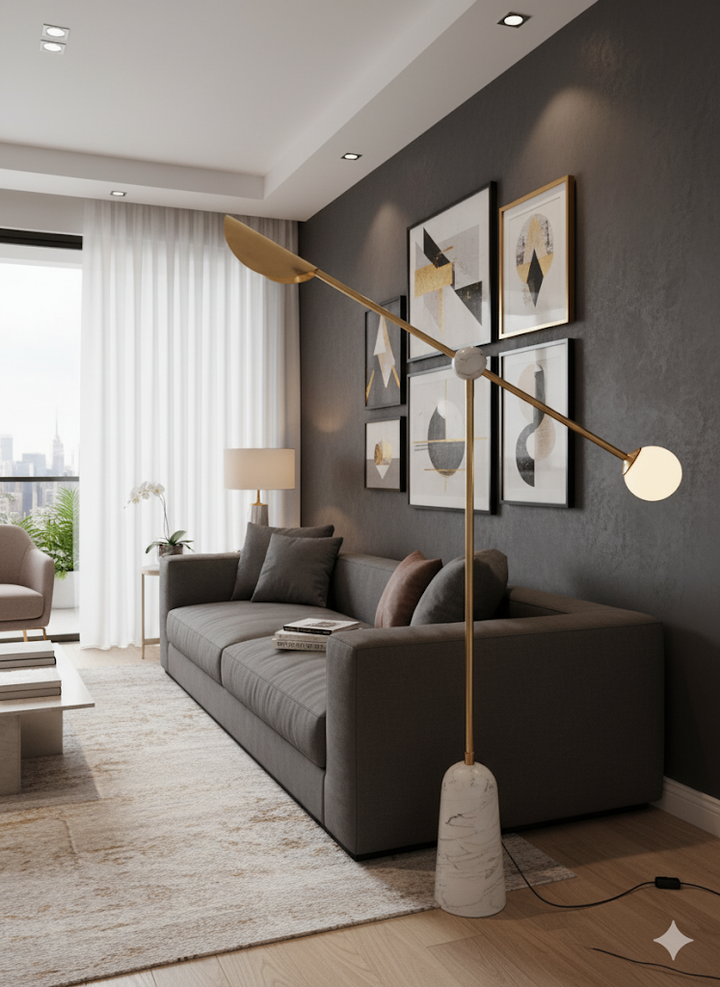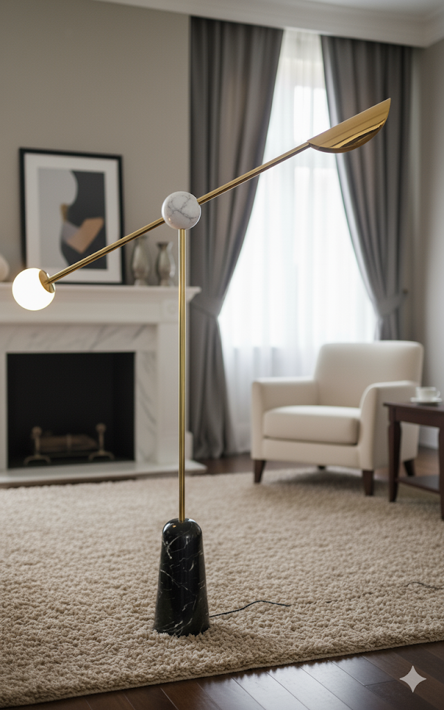 A minimalist design that complements any modern interior. This lamp features a solid marble base with a golden brass stem and it allows you to adjust the lighting direction creating a relaxing ambiance in your home.