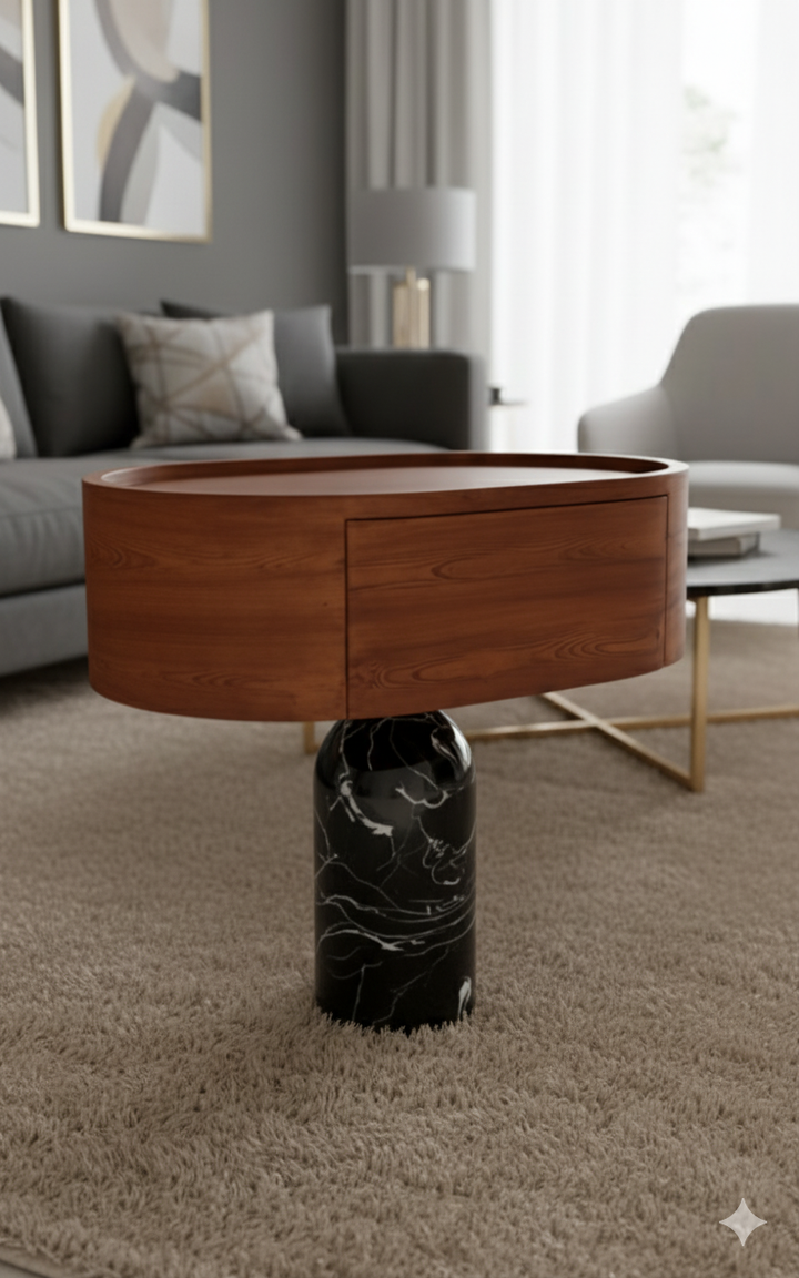 Elevate your bedroom or living space with the Lever Nightstand, a modern luxury accent piece crafted for refined interiors. Featuring a smooth wooden top with elegant curvature and a bold marble base, this table offers a stunning contrast between organic texture and timeless stone.