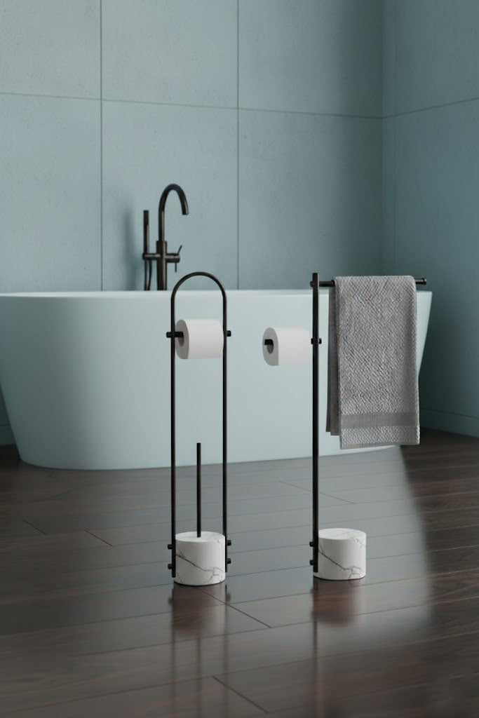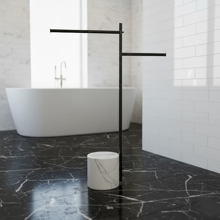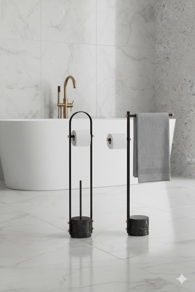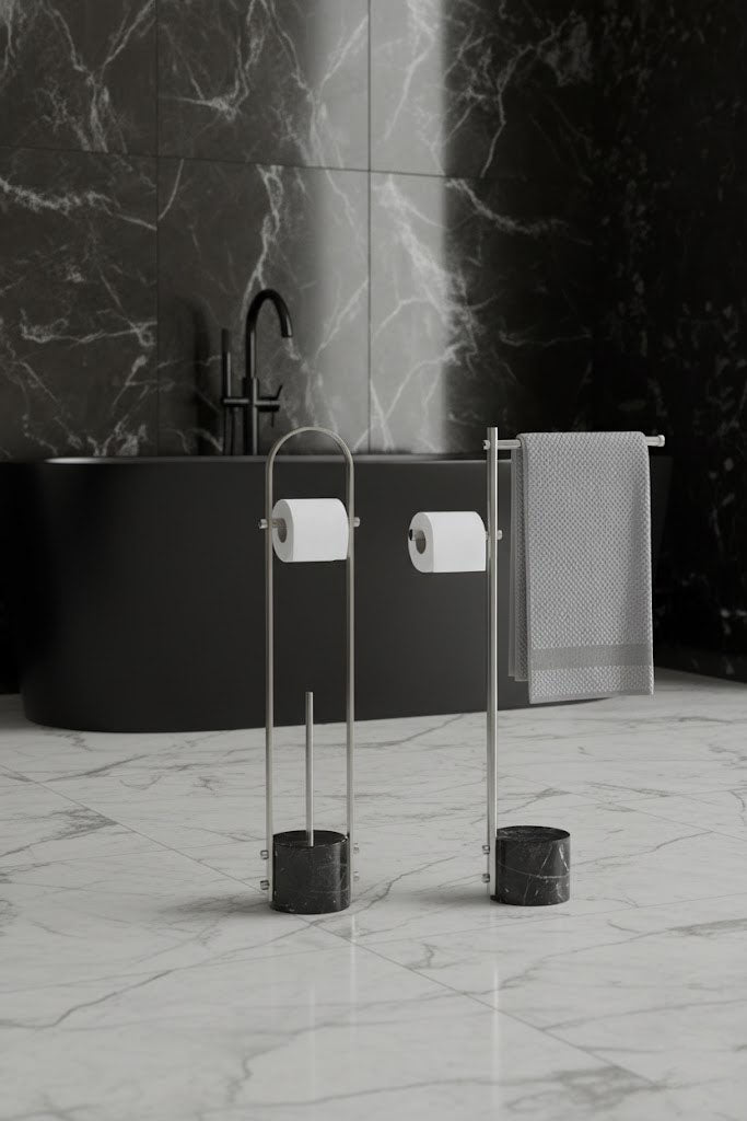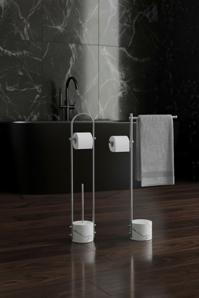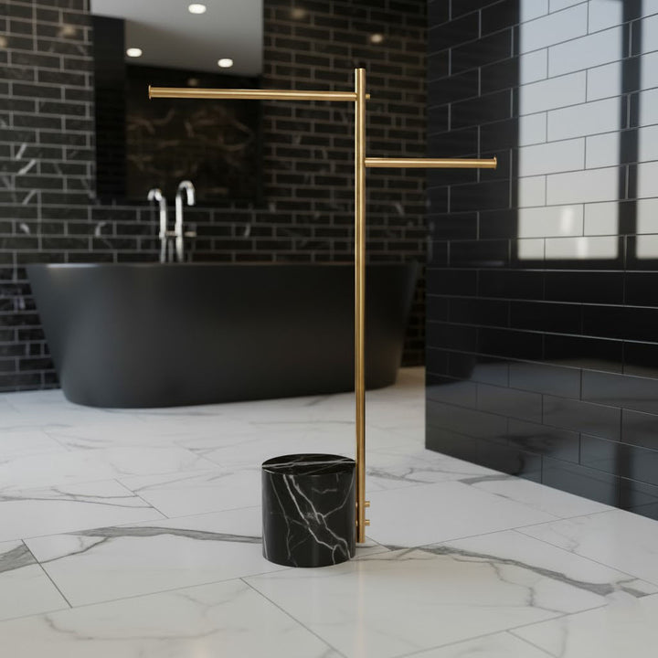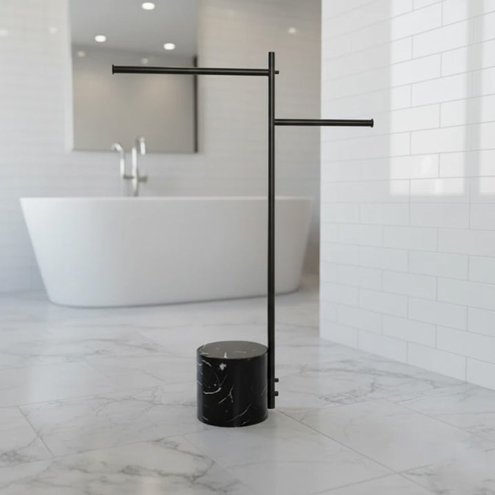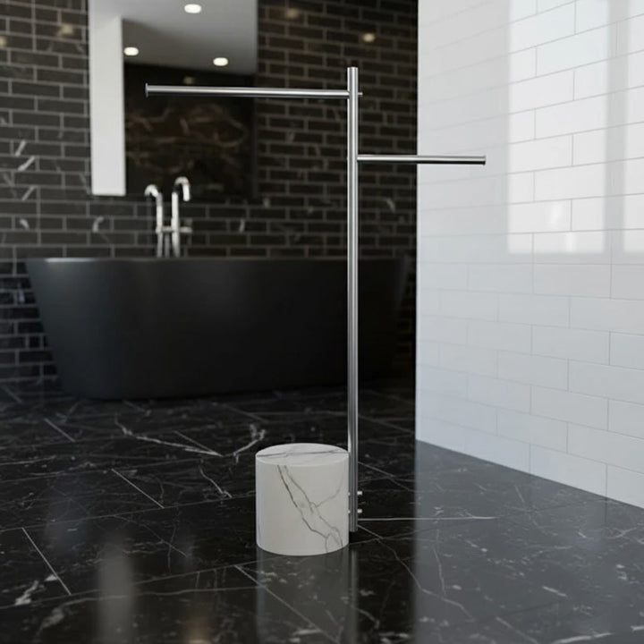 This towel stand is crafted from premium stainless steel and hand-polished to exude a refined elegant look. It is designed to add a touch of luxury to your bathroom decor and is functional at the same time.