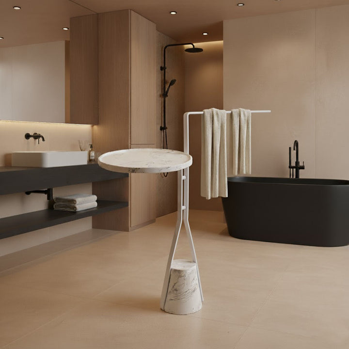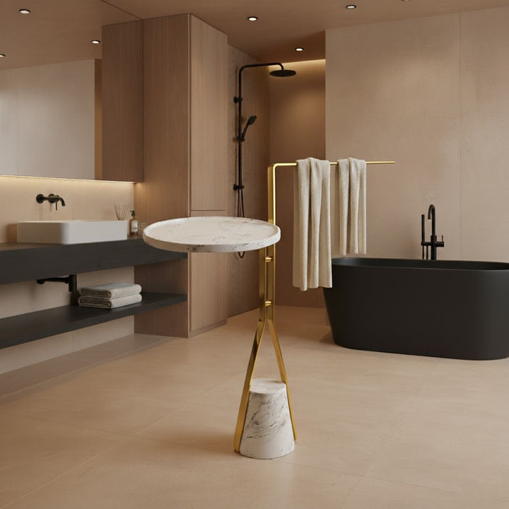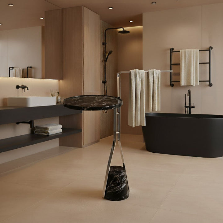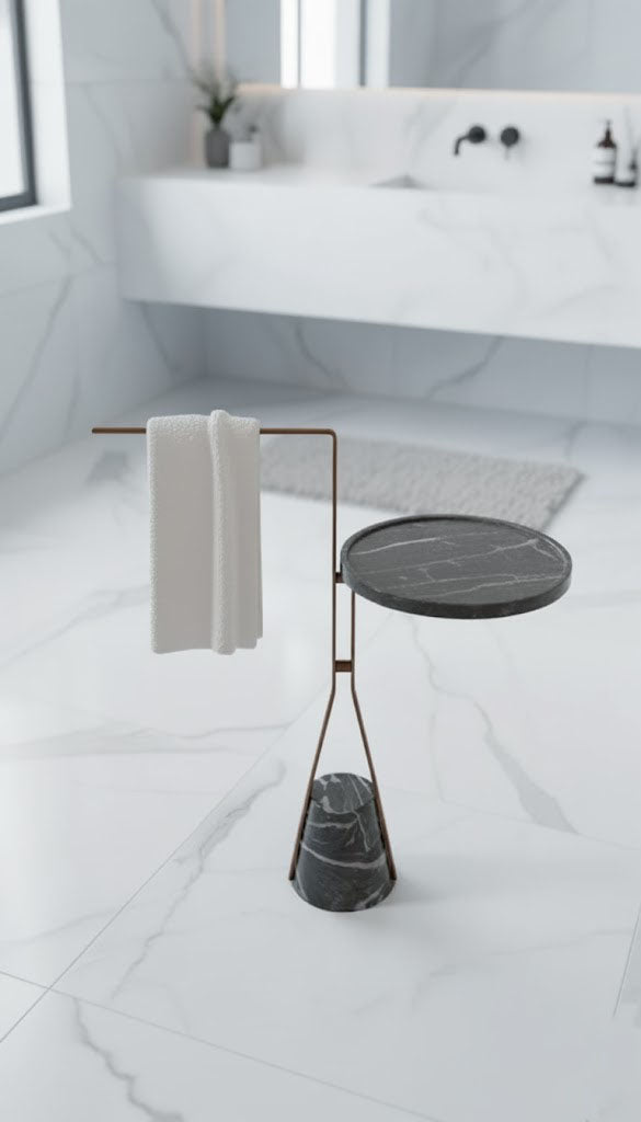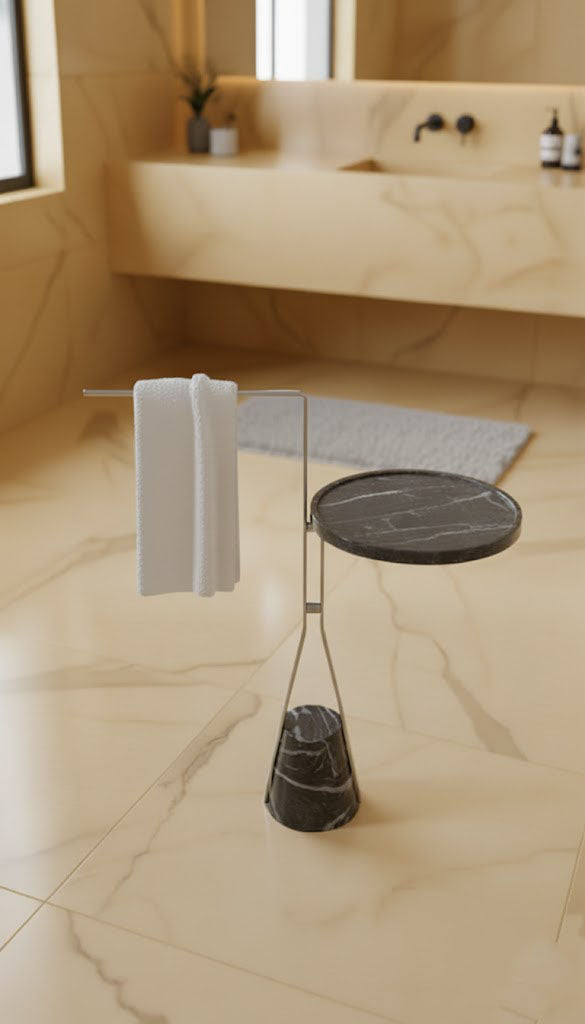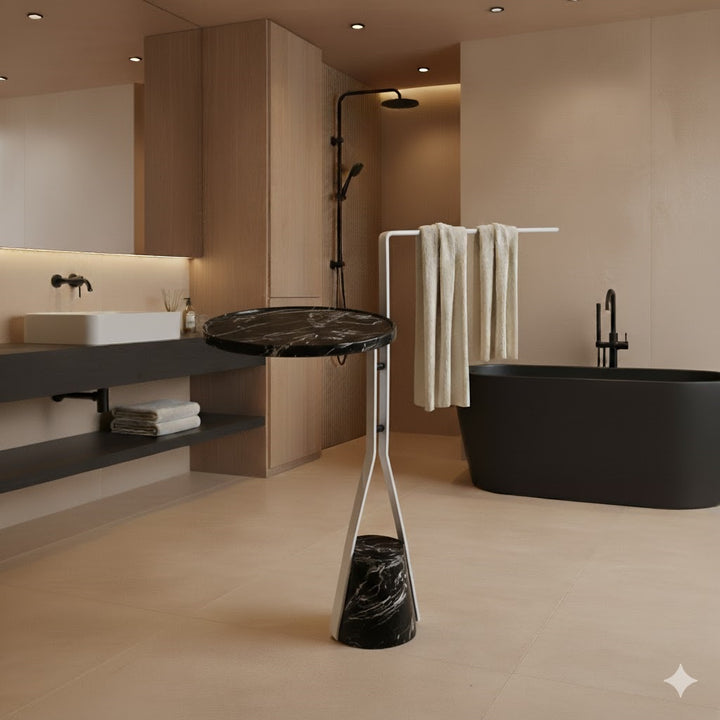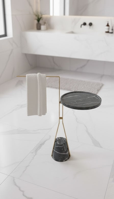 This towel stand is a timeless piece that makes your bathroom experience a luxurious one. Crafted from high-quality material and Tavozza marble, this is a classic bathroom accessory that complements any decor.