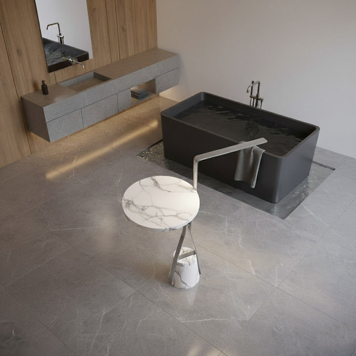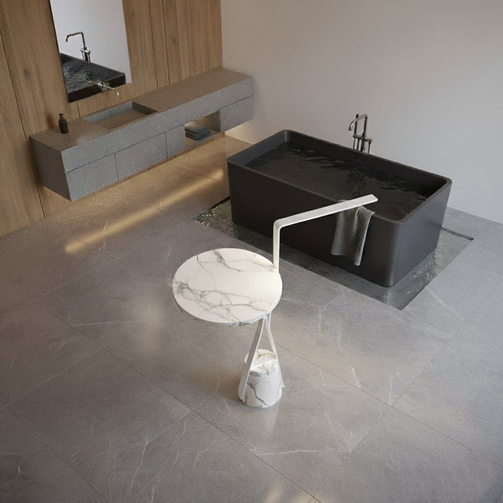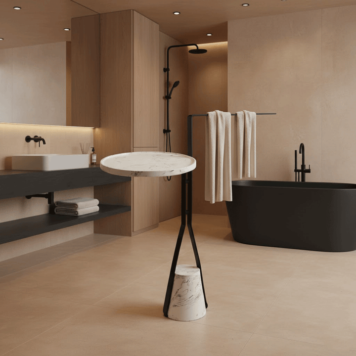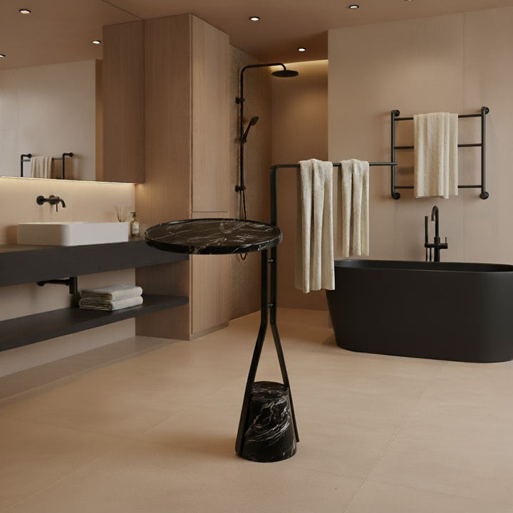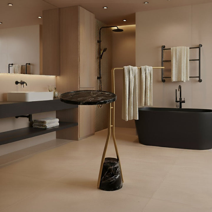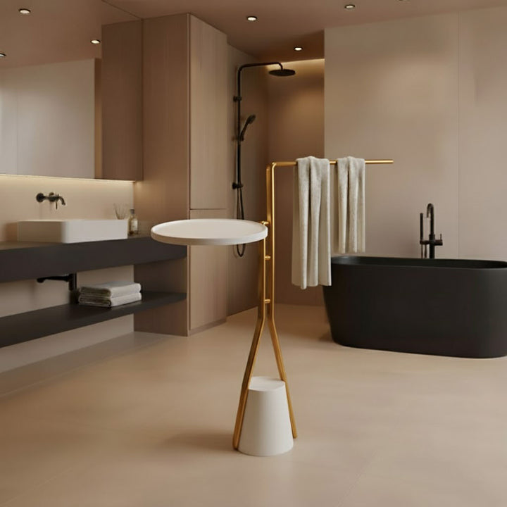 This towel stand is a timeless piece that makes your bathroom experience a luxurious one. Crafted from high-quality material and Tavozza marble, this is a classic bathroom accessory that complements any decor.