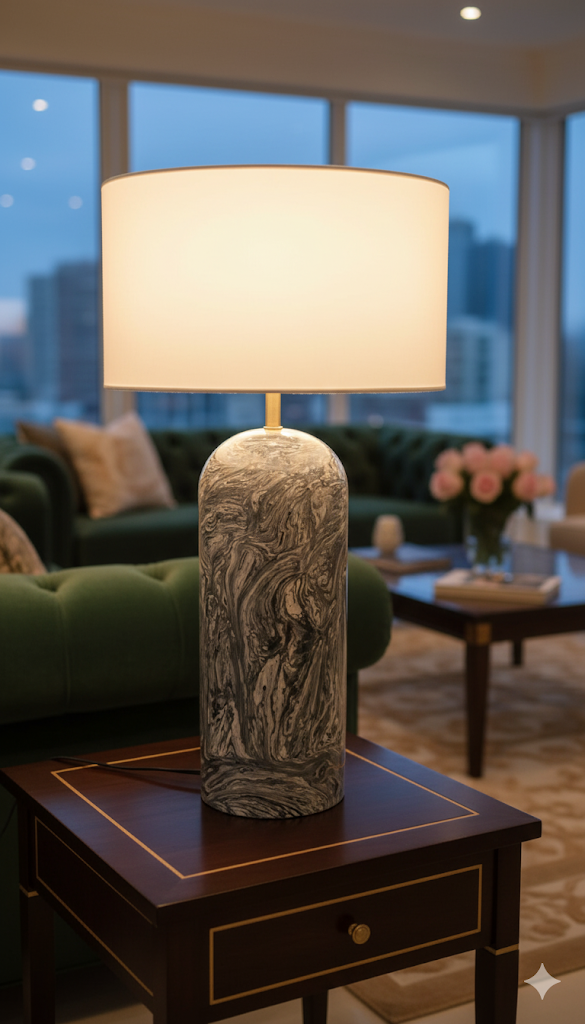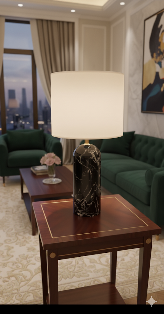 A statement piece that goes perfectly with the Metamorphic side table.It can be a conversation starter. With a marble base, handcrafted to ensure it creates a warm and cosy ambiance.